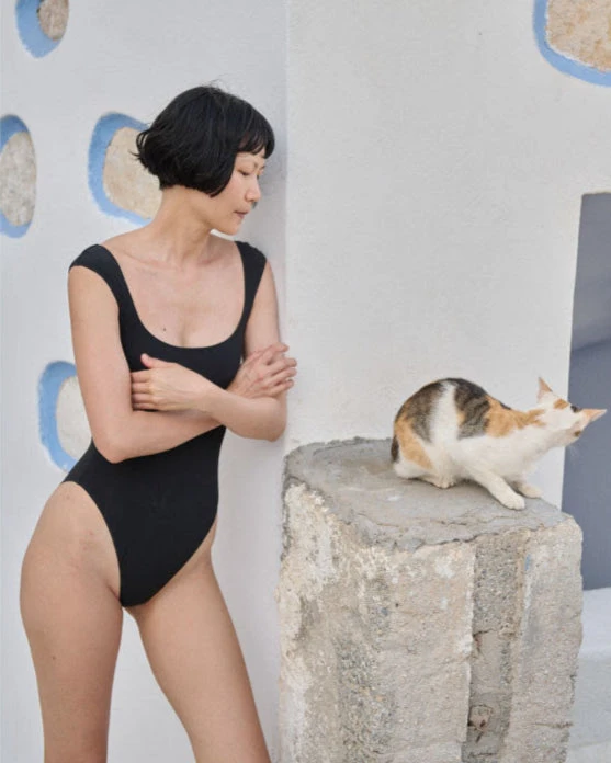 Be the star of the swim team in this chic and modern 1 piece that features the clean lines and subtle detailing that Araks is known for. A wide low set neckline flatters with the smallest of cap sleeves and a scooped out back. Doubles as a bodysuit, under pants or a skirt.