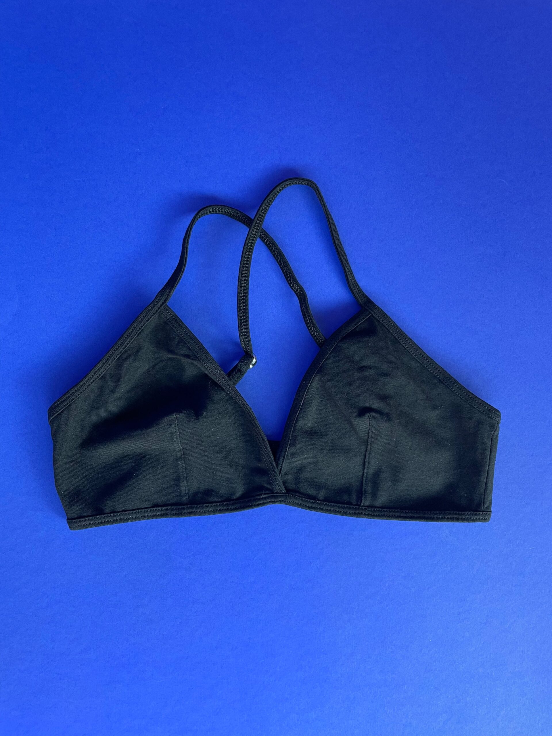 Comfortable triangle bra with crossover front detail and crossback straps.