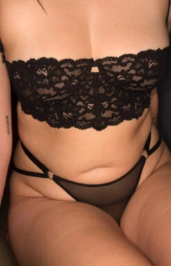 Delicate lace longline balconette bra with peekaboo cut out detail and scalloped edges that hug your body. Pair with the matching cheeky briefs or string briefs. The balconette cups give a good lift and highly popular with our smaller cup customers.