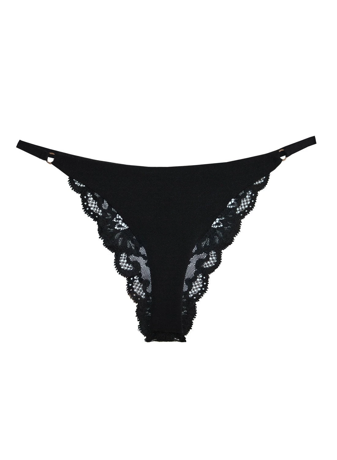 Super soft European microfiber with Fleur du Mal’s signature Charlotte lace backside. Flattering cheeky-cut scalloped lace back.