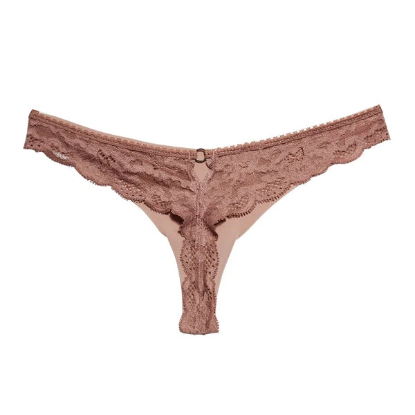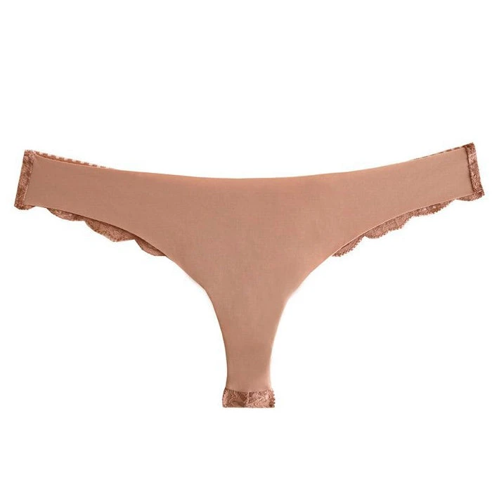 As pretty as any seamless undie can go: No-show front thong necessary for those certain outfits is accented with a pretty scalloped lace back.