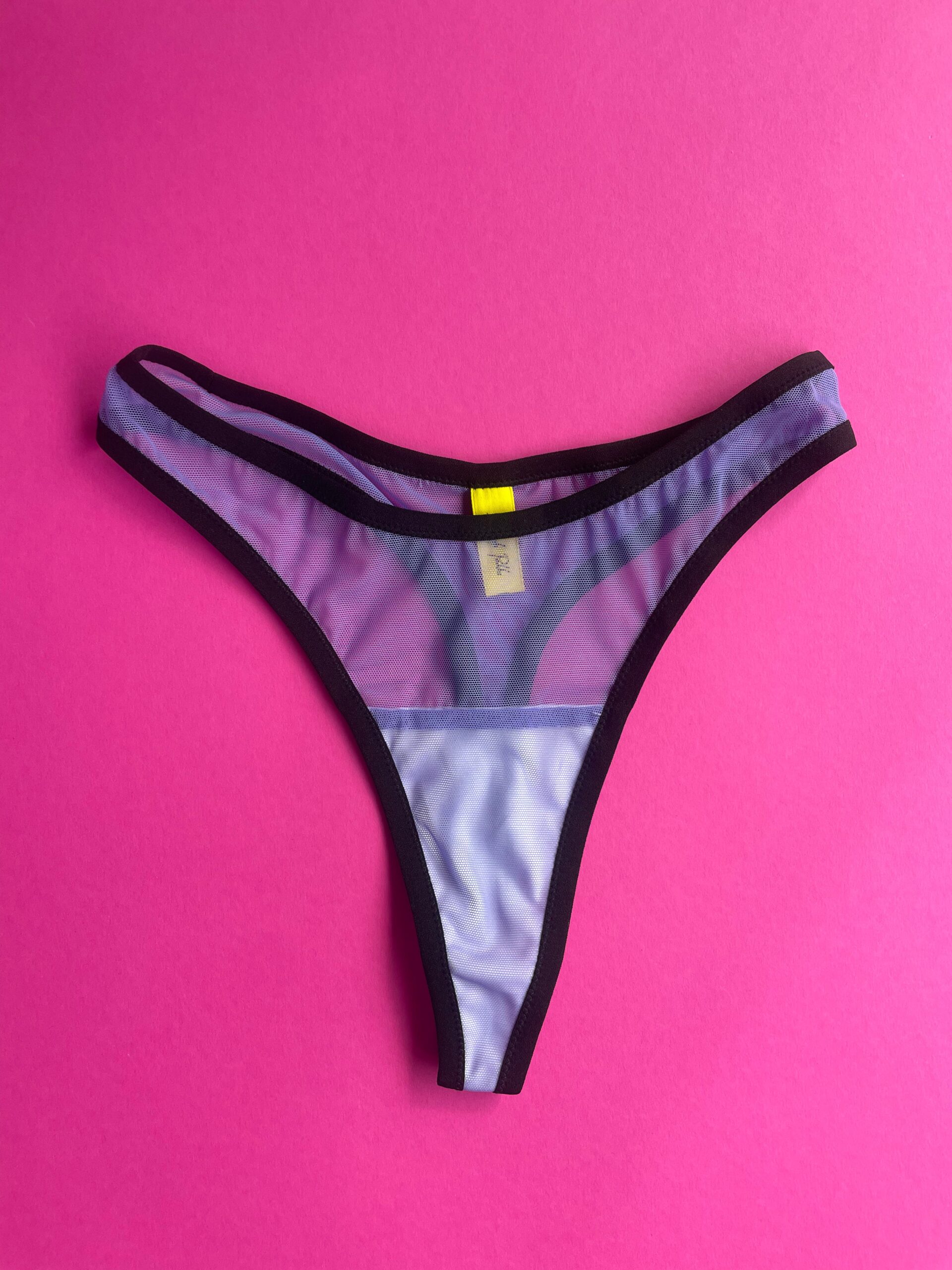 *Azaleas Exclusive* We commissioned Kayleigh Peddie to make this mesh set in a soft lilac purple color. The mesh thong comes with soft black elastic trim and high cut legs for an elongating effect.
