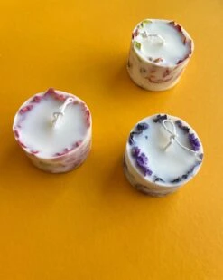 Made from dried flowers and leaves, 100% soy wax, 100% beeswax and blended with essential oils.