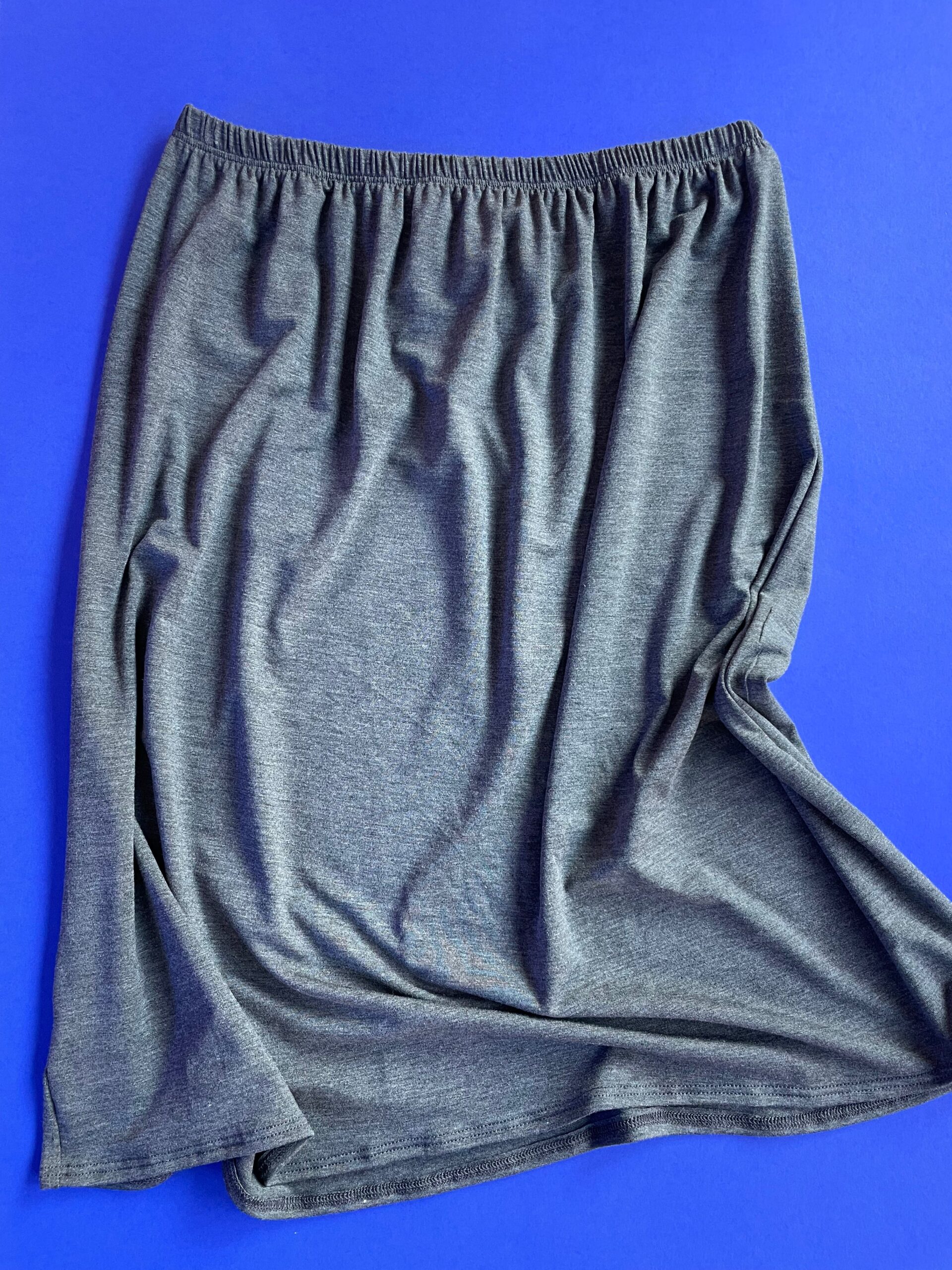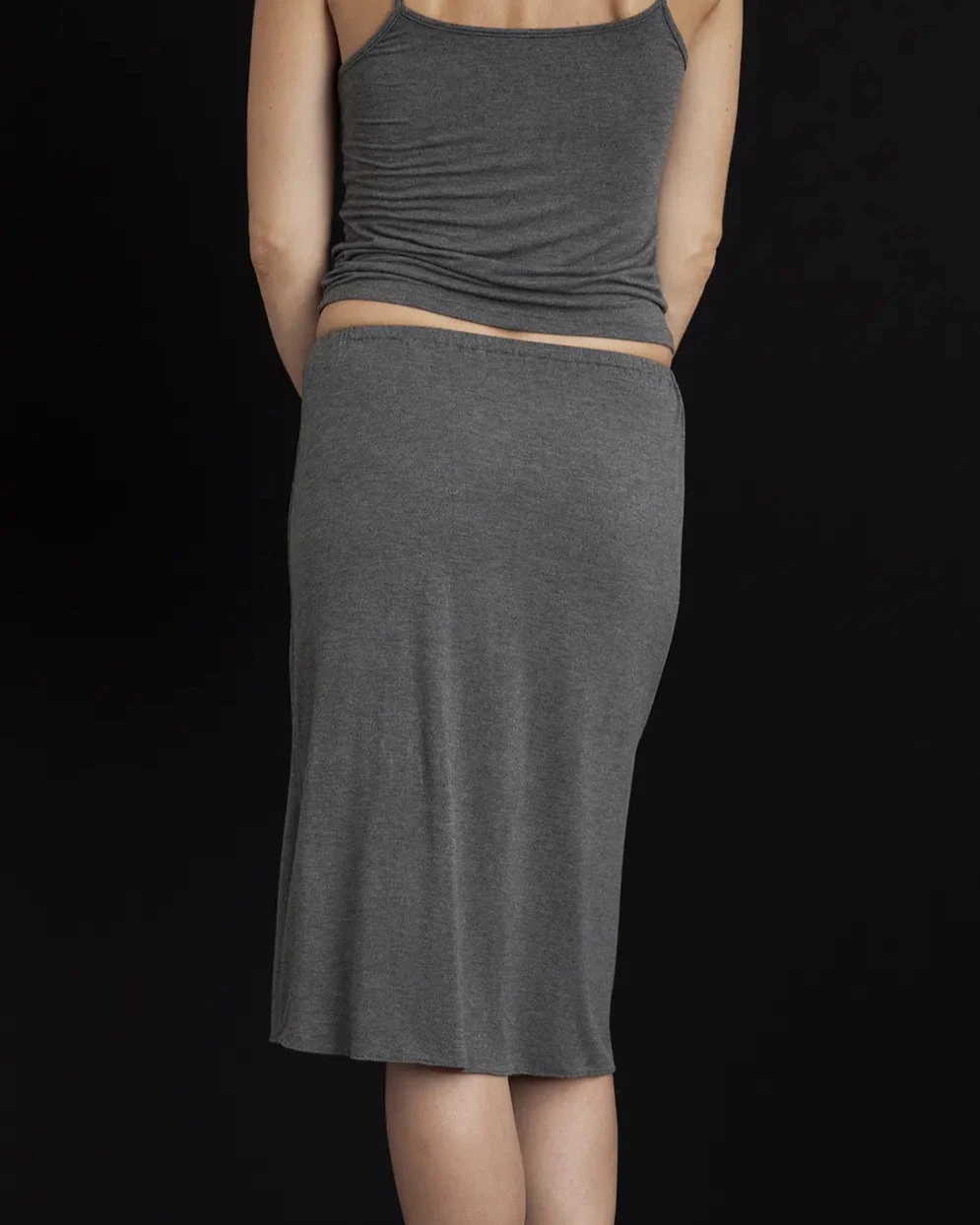 A fluid, knee-grazing skirt that is both comfy and effortless. Elasticized waist. Pair with a simple tee or tank and your Summer look is born.