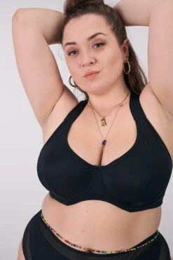 Offering the look of a halter bikini without hurting the back of your neck, this new style offers good support for our fuller chested babes. Offered from size 3 (Medium) to 7 (XXX-Large).