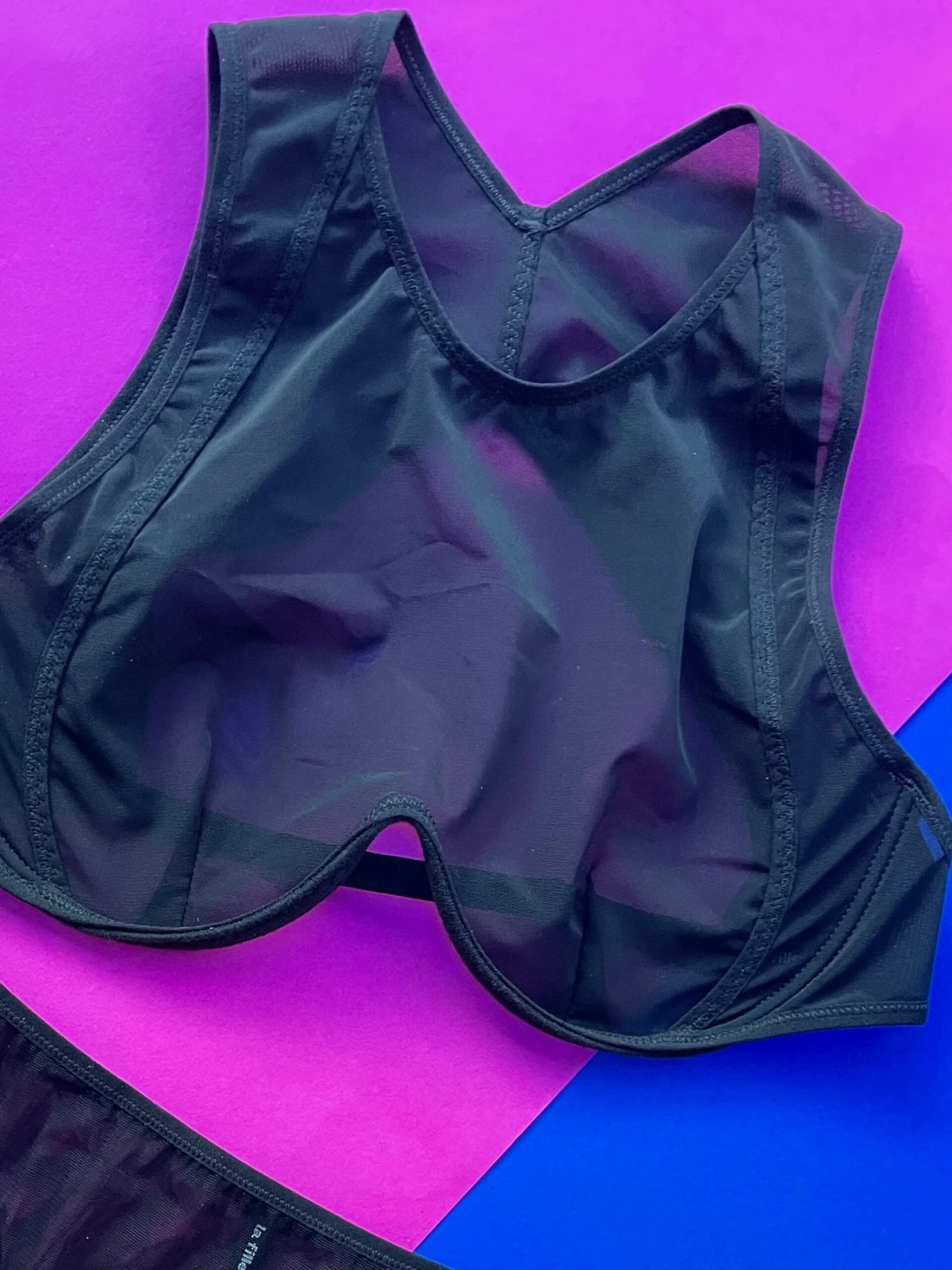 We brought back the Futura monowire bra from La Fille d’O back for sweater season. High neckline offers extra support and high fashion.