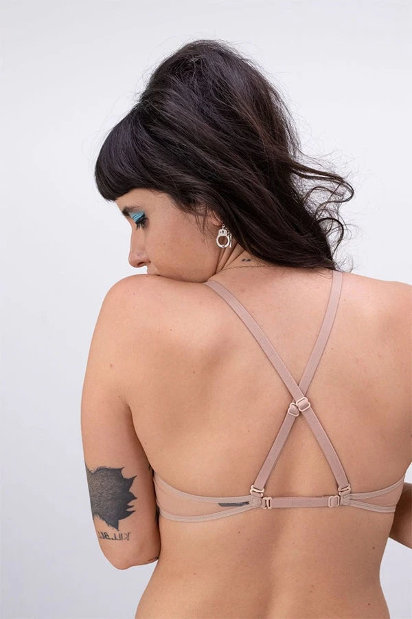 Perfect everyday bra from La Fille d’O that is anything but basic. Multi-way shoulder-straps can be worn straight or crossed, offering differing levels of support.