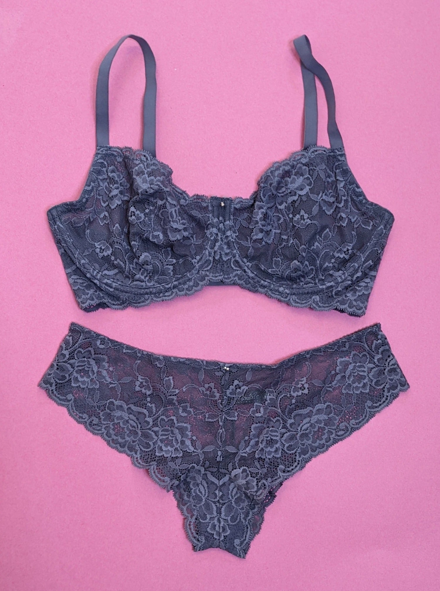 This demi cup bra by Montelle is rendered in a pretty floral stretch lace. Underwire with thick elastic straps for support. The fuller cups (some E, F, and G cups) come in a four-part construction with more coverage.
