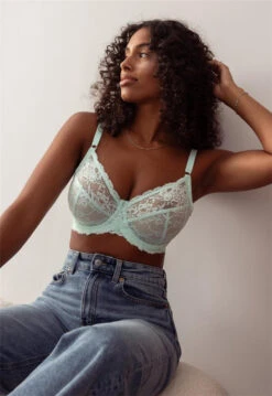 Full cup bra designed with fuller busts in mind, a pretty floral stretch lace with four part construction takes the weight off your shoulders while enhancing your natural shape. The bottom and side of the cup is lined with rigid mesh to provide extra support alongside the U-back shape.