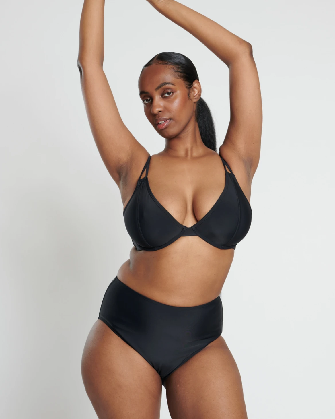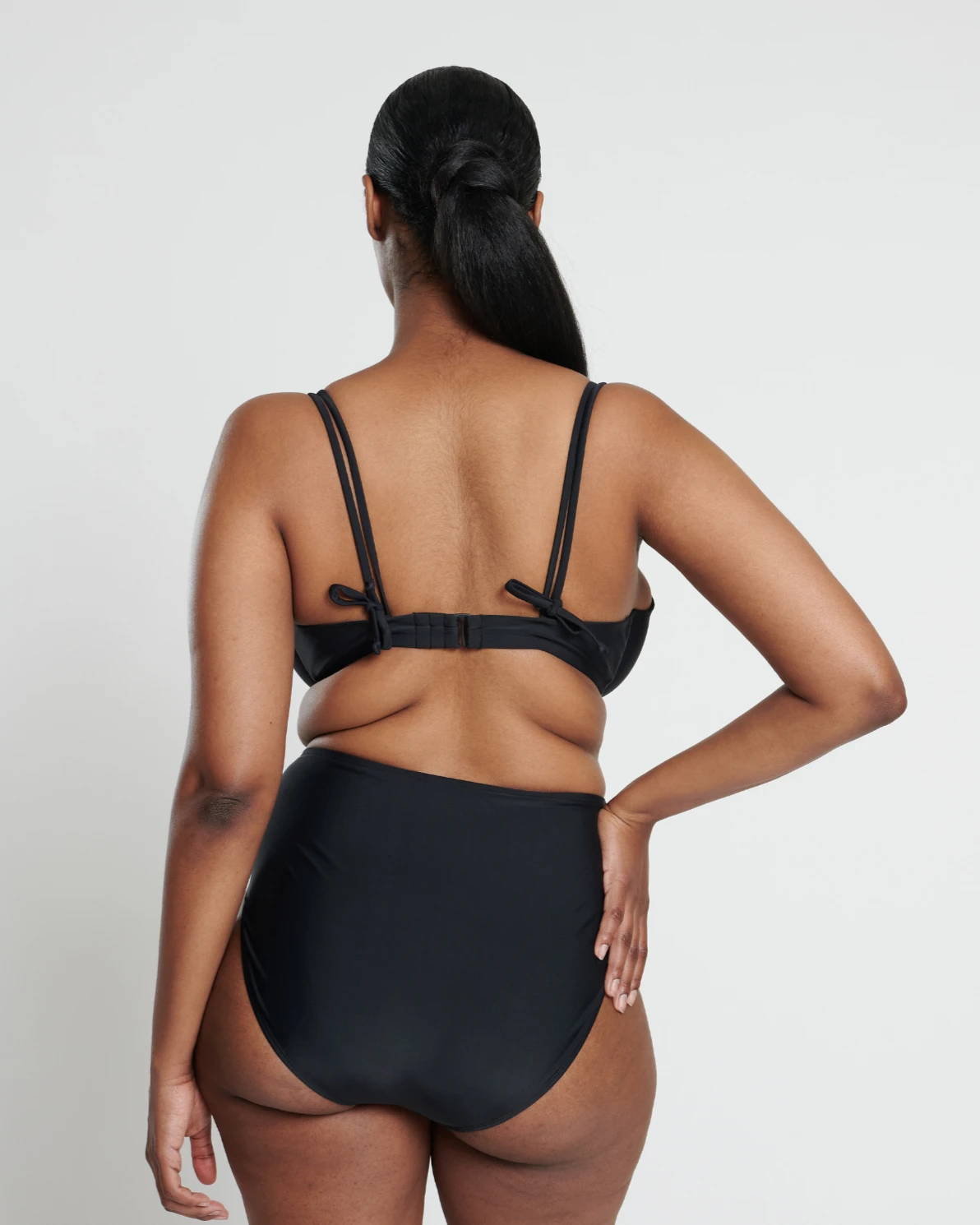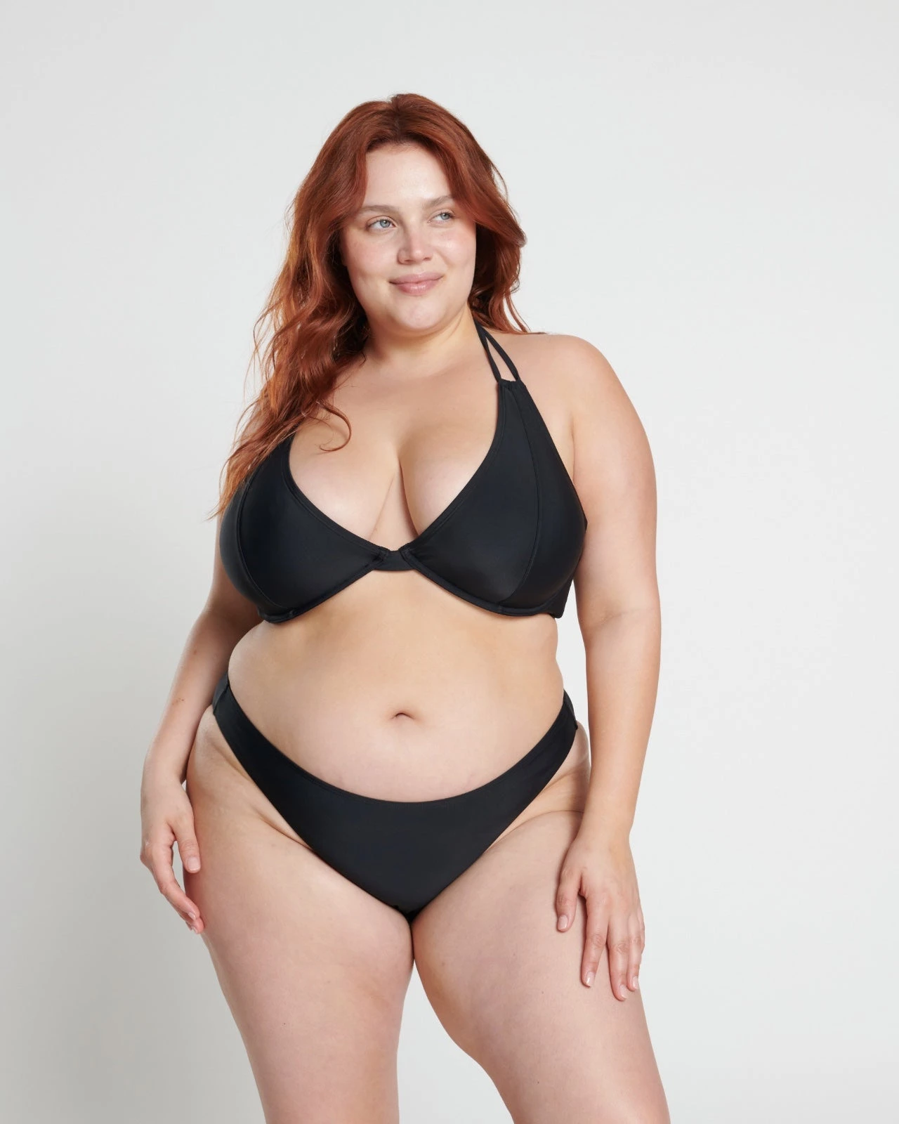 An underwire bikini top but the look of a triangle! This multi way top has stretchy cups for a perfect fit and ties that can be worn as a halter neck or over the shoulder.