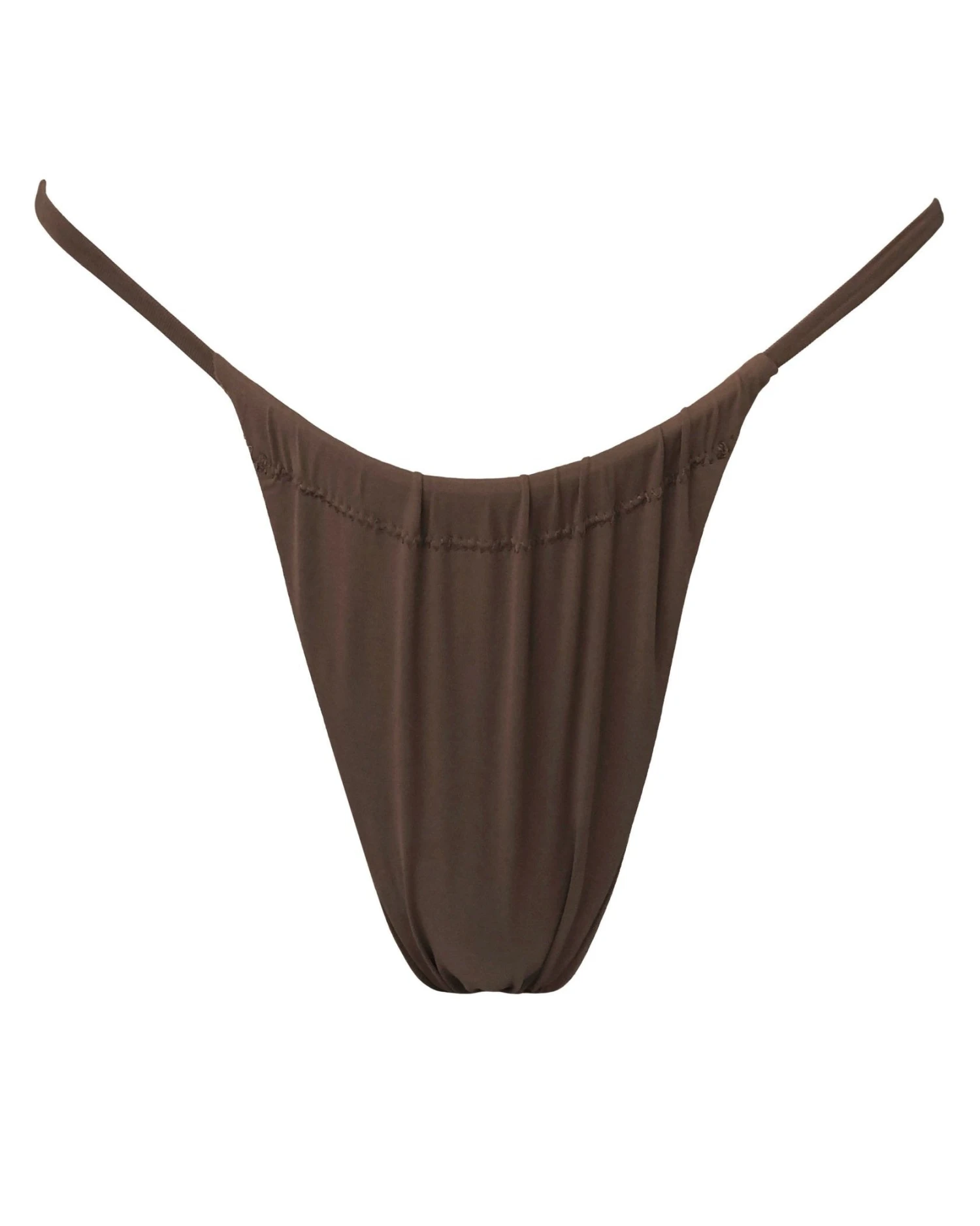 Curve flattering, adjustable staple bikini bottom that can be scrunched, from minimal to cheeky coverage. Side straps can be worn higher or lower.