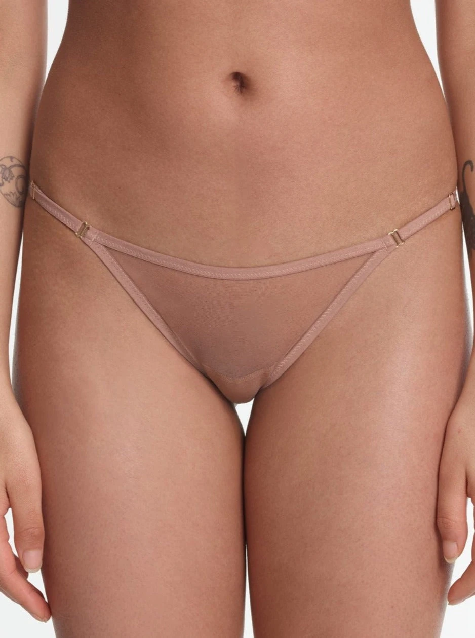 Made out of fine tulle, this mini brief can be adjusted on the hips for a more or less high-cut effect.